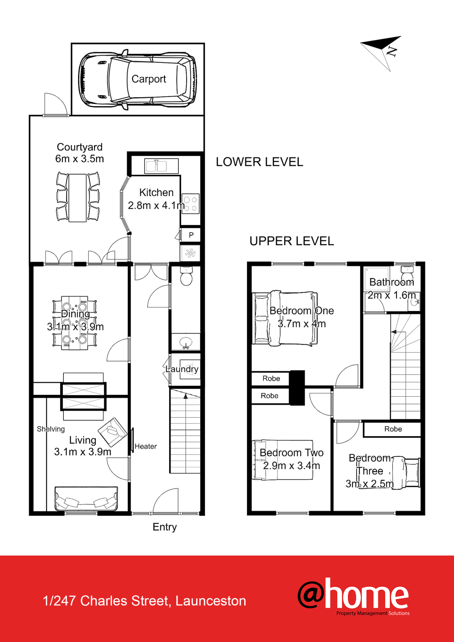 CONFIGURATION: A two level townhouse comprising of 3 bedrooms, all with robes and spacious bathroom upstairs. Downstairs complete with functional kitchen, ample storage and quality appliances, separate formal dining room with French door access to a paved private courtyard, formal lounge area, separate powder room and euro style laundry.